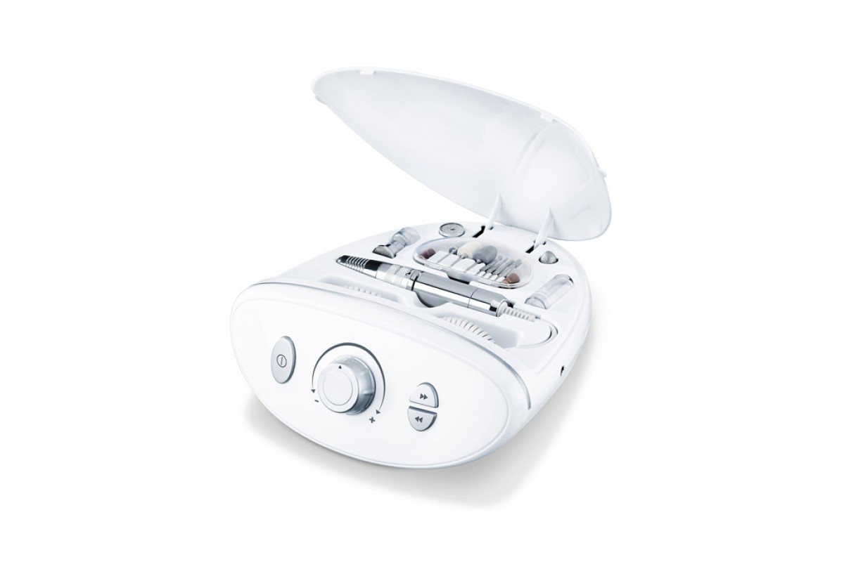 Завдяки поєднанню плавного регулювання швидкості з обертанням за годинниковою стрілкою або проти неї, стає можливим професійний догляд за нігтями та стопами, який зазвичай може забезпечити лише фахівець із педикюру. Максимальна потужність MP100 досягає 20 000 оборотів на хвилину, тому прилад також підходить для обробки штучних нігтів.